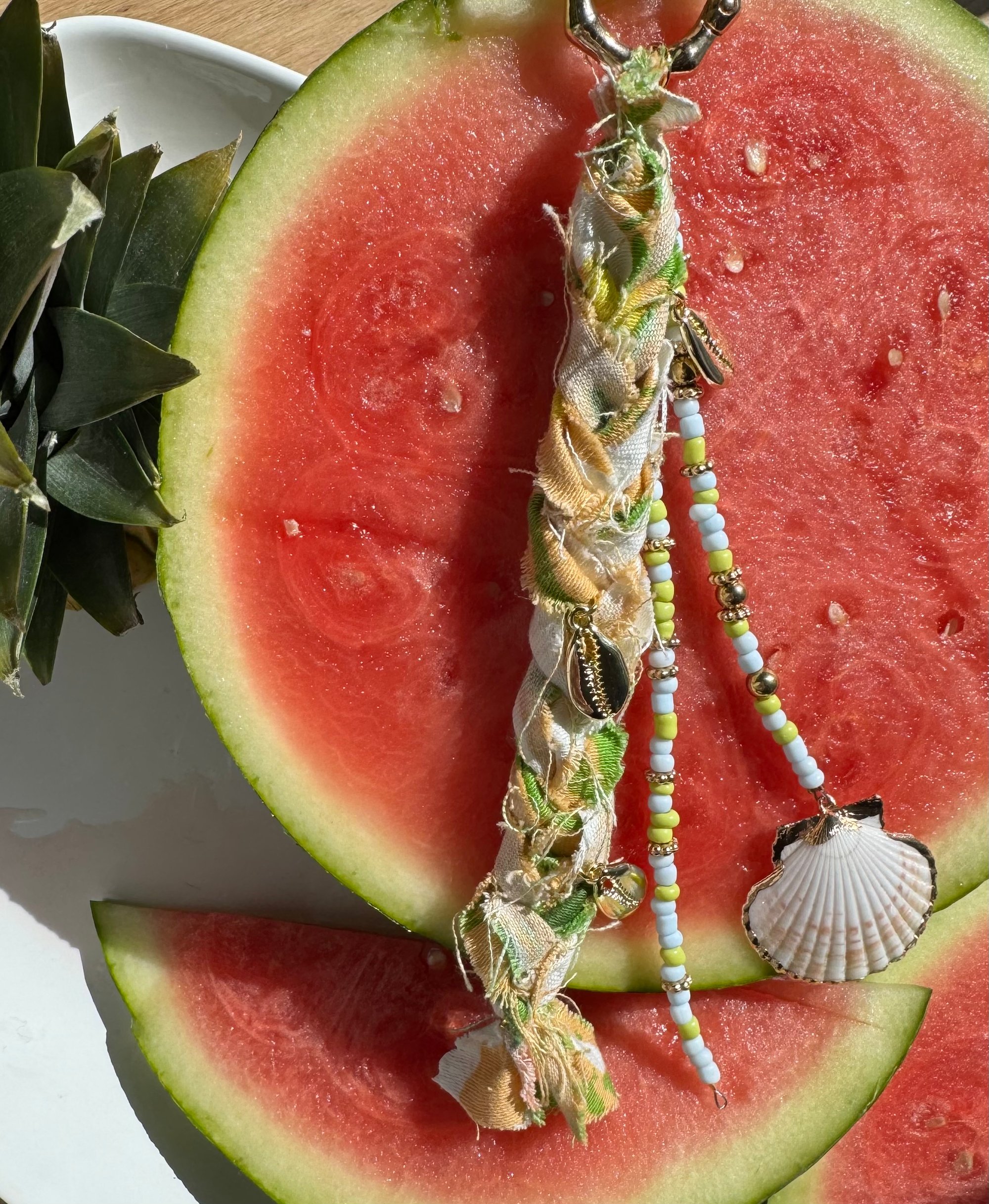 This playful hand made bag charm will add texture and personality to your everyday bag